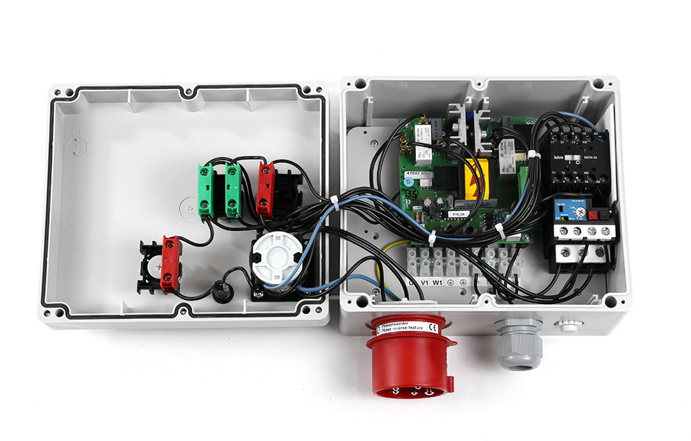 compact plastic housing. The soft start function slowly accelerates the motors to the rated speed