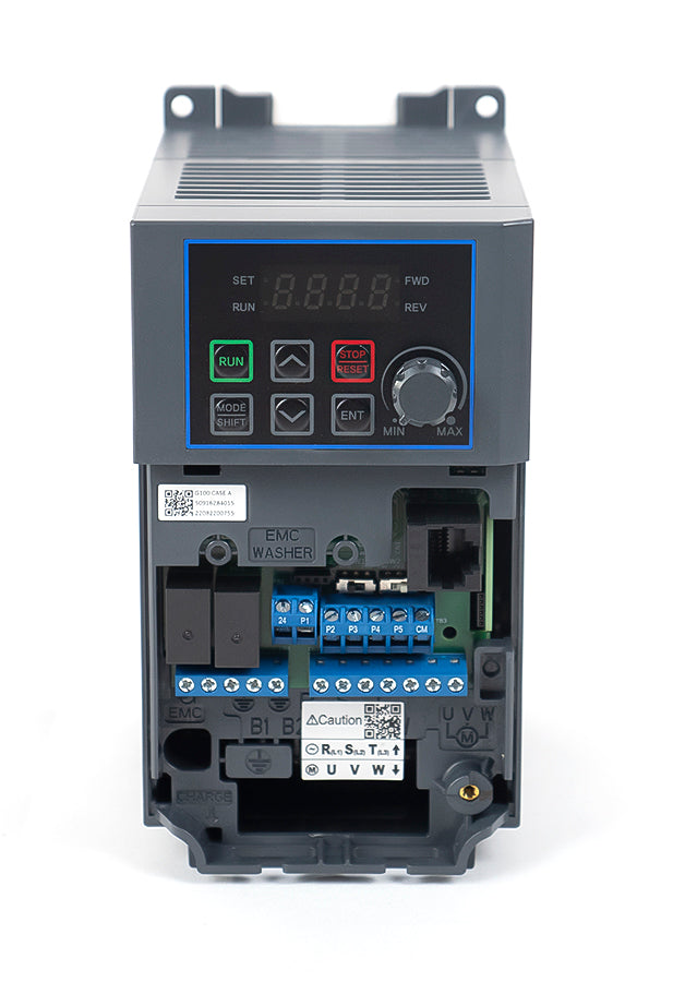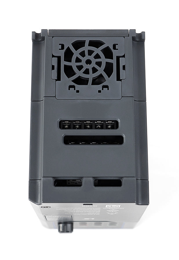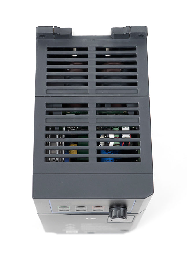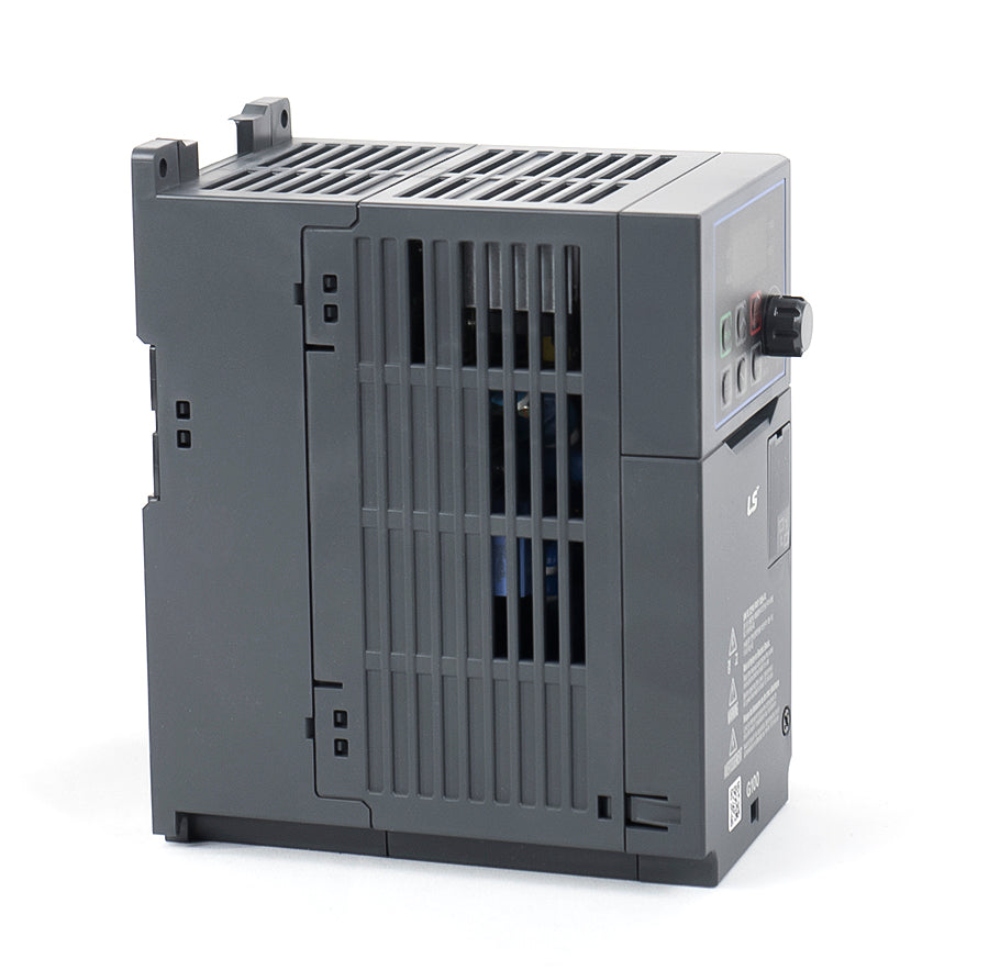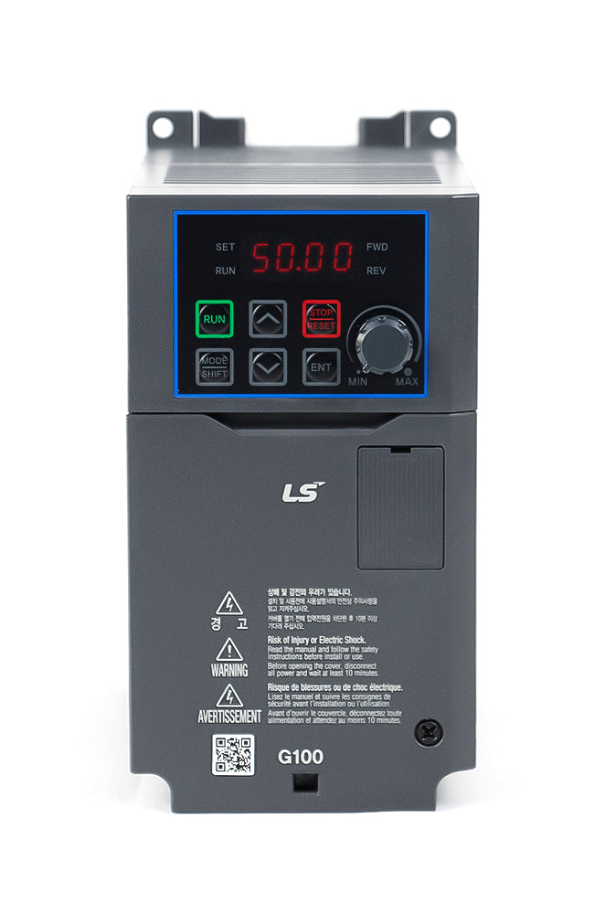 • Frequency converter, 0.4kW, 400V, 1.3A, IP20, with control panel • U/f control, sensorless vector control selectable • PID controller for advanced process control • High torque across the entire engine speed range • 0.1-400Hz output frequency • 1-15kHz clock frequency • Input voltage range -15% to +10% • Error register: last 5 errors • Analog input 0 to +10Vdc / -10 to +10Vdc • 150% torque at 0.5Hz • Protection class IP20, UL Type 1 (Optional) • Torque boost (manual/automatic) • Input signal PNP/NPN selectable • Control and parameter setting for a second motor • Transistor for dynamic braking integrated as standard • Automatic adjustment: vector measurement of the motor and autotuning • Integrated communication RS485 (LS Bus / Modbus RTU) with RJ45 • Fan with on/off control, easily replaceable