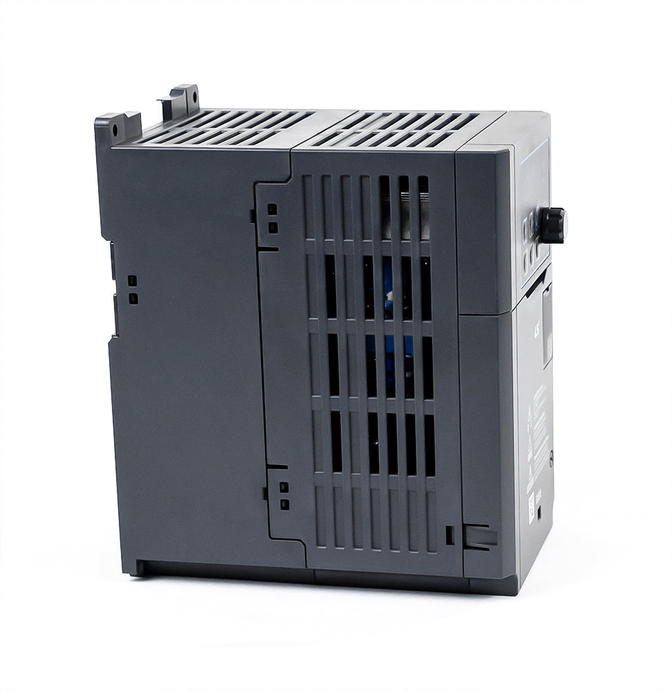 • Frequency converter, 1.5kW, 400V, 4.0A, IP20, with control panel • U/f control, sensorless vector control selectable • PID controller for advanced process control • High torque across the entire engine speed range • 0.1-400Hz output frequency • 1-15kHz clock frequency • Input voltage range -15% to +10% • Error register: last 5 errors • Analog input 0 to +10Vdc / -10 to +10Vdc • 150% torque at 0.5Hz • Protection class IP20, UL Type 1 (Optional) • Torque boost (manual/automatic) • Input signal PNP/NPN selectable • Control and parameter setting for a second motor • Transistor for dynamic braking integrated as standard • Automatic adjustment: vector measurement of the motor and autotuning • Integrated communication RS485 (LS Bus / Modbus RTU) with RJ45 • Fan with on/off control, easily replaceable
