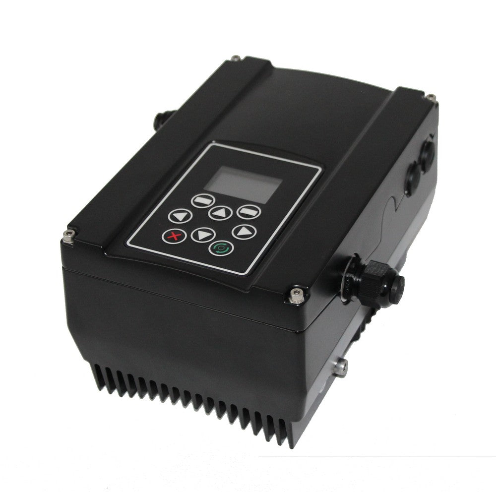 The variant "Frequency converter with membrane keyboard" contains a built-in potentiometer and offers the possibility to