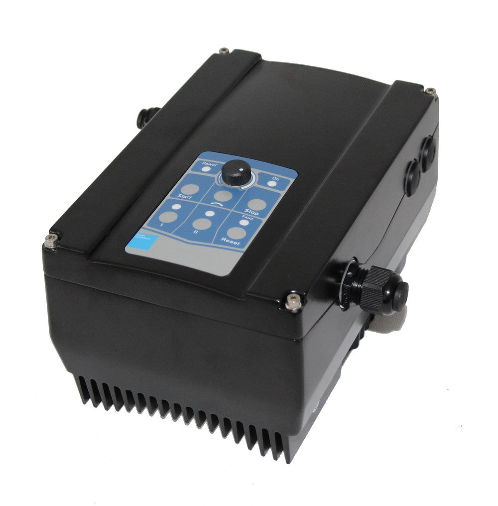 The variant "Frequency converter with membrane keyboard" contains a built-in potentiometer and offers the possibility to