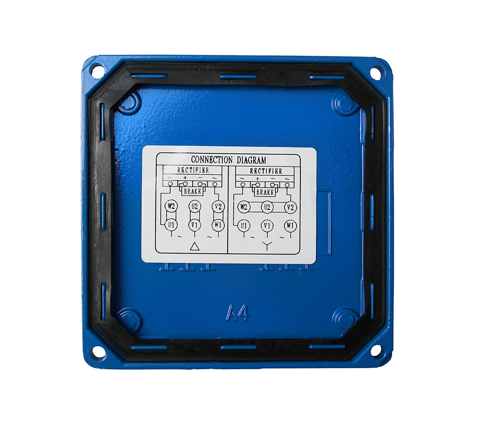Farbton= RAL 5010 (Enzianblau), Frequenz= 50/60 Hertz, Schutzart= IP55, Bremse= x Nm 230V mit Gleichrichter.