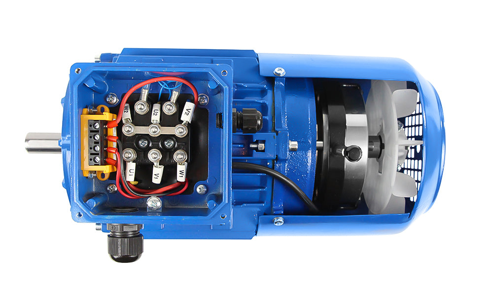 Die Federdruckbremse bremst den AC-Motor im stromlosen Zustand. Im Umrichter- Betrieb ist die Bremse